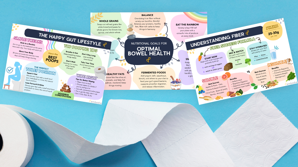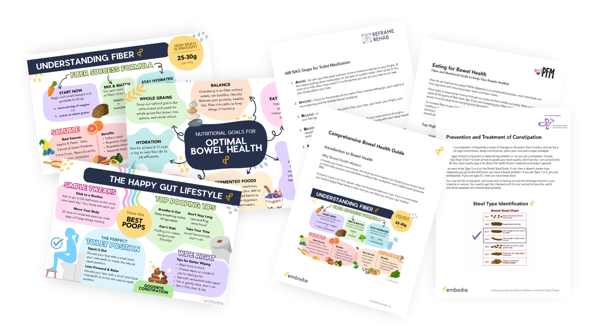 That’s why Embodia, and our partners (myPFM, Pelvic Health Solutions, and Reframe Rehab), have created easy-to-understand patient education resources for maintaining a healthy bowel!